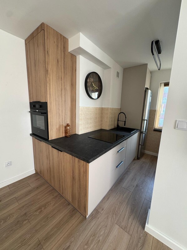 - kuchnia – nowe meble kuchenne, nowe sprzęty AGD w zabudowie (pralka, zmywarka, piekarnik, płyta indukcyjna)