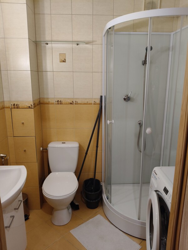 Lokal ma instalację wodną, elektryczną. Jest centralne ogrzewanie oraz ciepła i zimna woda z miasta. Na wyposażeniu znajdują się m. in. lodówka, kuchenka indukcyjna, zmywarka, pralka, prysznic, rogówka, stół i krzesła, łóżko małżeńskie, tapczan jednoosobowy, szafa.