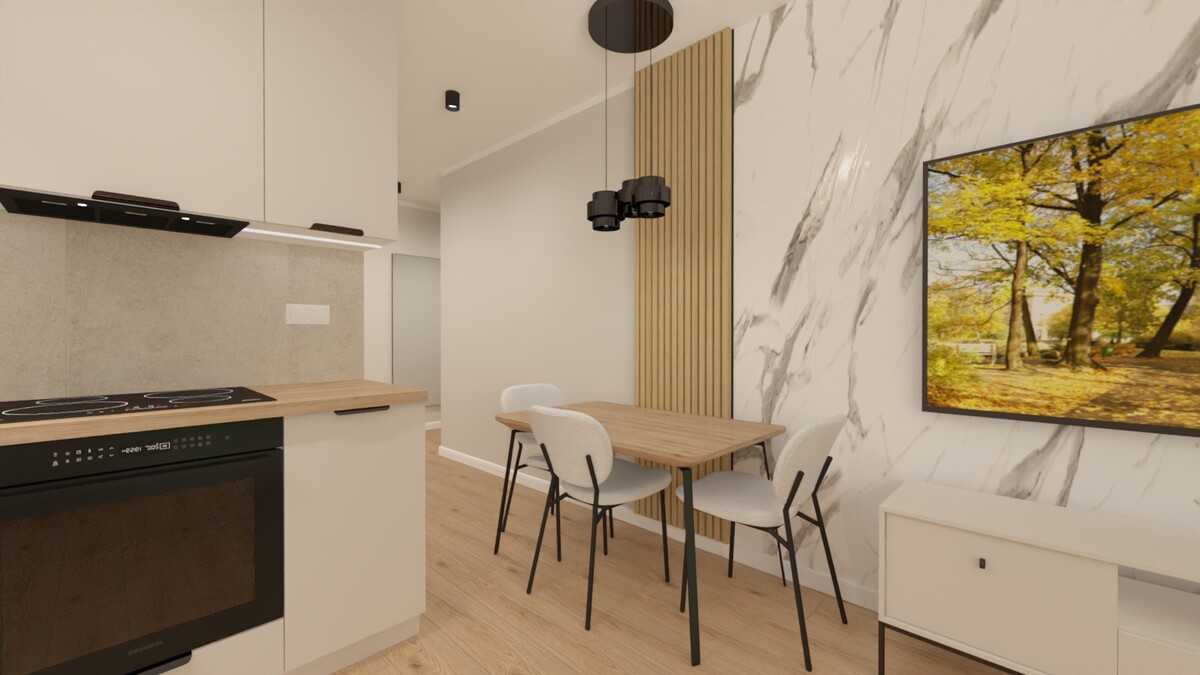 Mieszkanie wykończone w jasnych i neutralnych kolorach z drewnianymi dodatkami w postaci paneli ściennych czy blatu kuchennego. Kontrastu aranżacji dodają czarne oprawy oświetleniowe i elementy wykończenia łazienki. Podczas remontu zostaną wymienione instalacje elektryczne i hydrauliczne. Wszystkie media z sieci miejskiej. Czynsz do spółdzielni mieszkaniowej Zakrzewo wynosi ok 800 zł. Do mieszkania przynależy piwnica o powierzchni 4,5 m2. Mieszkanie idealne dla rodziny z dziećmi, ceniących sobie standard, wygodę z dobrą komunikacją miejską.