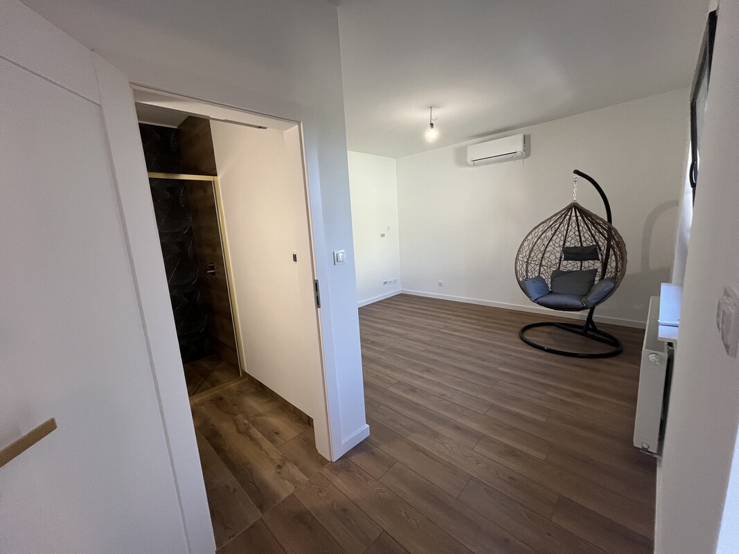 Zewnętrznie mieszkanie jest całkowicie wykończone, natomiast w środku znajduje się w stanie deweloperskim – z wykończoną na gotowo łazienką. Ogrzewanie miejskie.