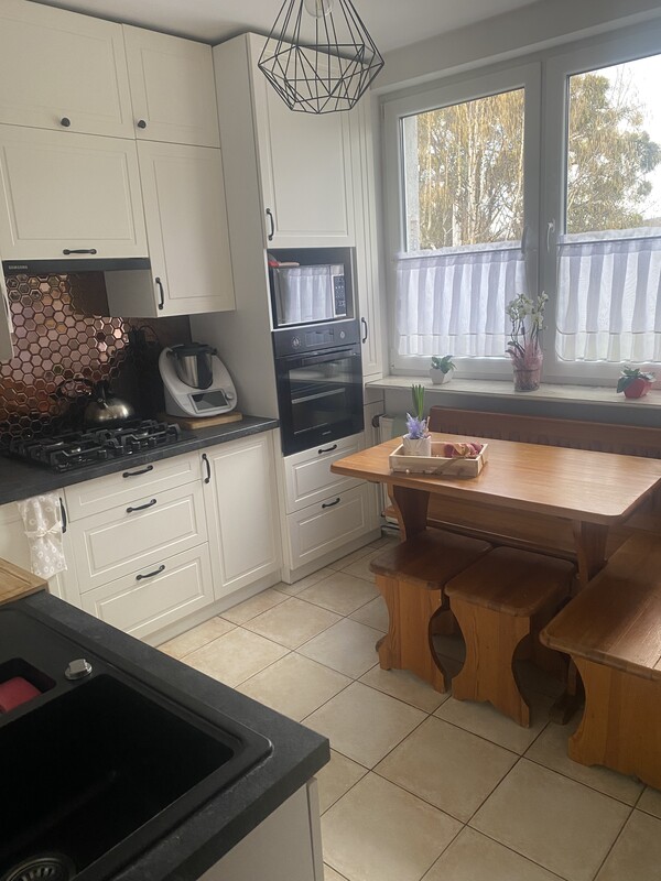 • duża, jasna, przestronna kuchnia ze spiżarką, sprzęty AGD w zabudowie: płyta gazowa szklana, piekarnik, zmywarka, lodówka wolnostojąca