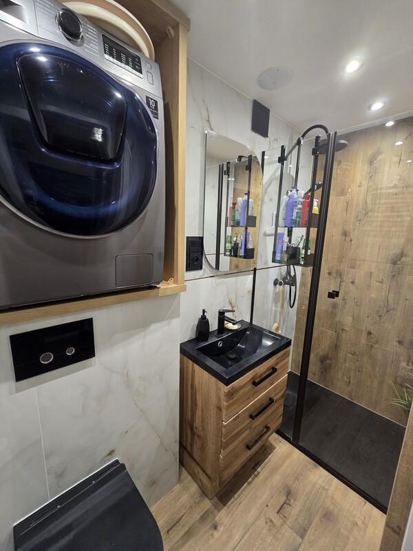 - łazienka z prysznicem i wc,