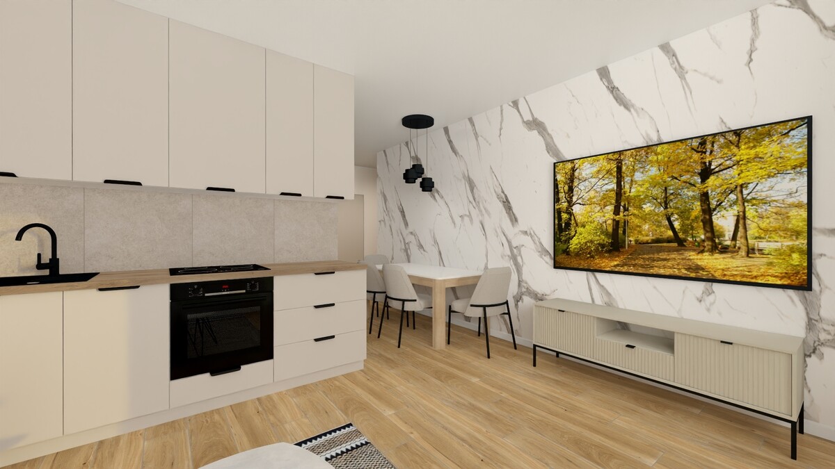 Całe mieszkanie zostało starannie zaprojektowane w spójnym nowoczesnym stylu. Salon to prawdziwe serce domu. Nowoczesna zabudowa kuchenna tworzą nie tylko funkcjonalną przestrzeń do gotowania, ale także miejsce do spotkań z bliskimi. Podłogi w pokojach będą pokryte panelami bardzo dobrej jakości, nowocześnie zaaranżowana łazienka z prysznicem, gres o ponadczasowej kolorystyce. Zabudowa kuchni w modnych jasnych kolorach, całość doskonale komponuje się z podłogami o naturalnej barwie. Ciekawie zaaranżowane ściany w pokojach. Salon z wyjściem na wygodny, duży balkon o powierzchni ok.6 m2.Bardzo korzystny rozkład mieszkania; z przedpokoju prowadzą wejścia do pozostałych pomieszczeń; ustawne pokoje. Wymienione będą instalacje elektryczne i hydrauliczne oraz drzwi wewnętrzne i zewnętrzne. Mieszkanie posiada wszystkie media miejskie, jest w pełni olicznikowane. Do mieszkania przynależy piwnica o pow. ok.2,50 m2.