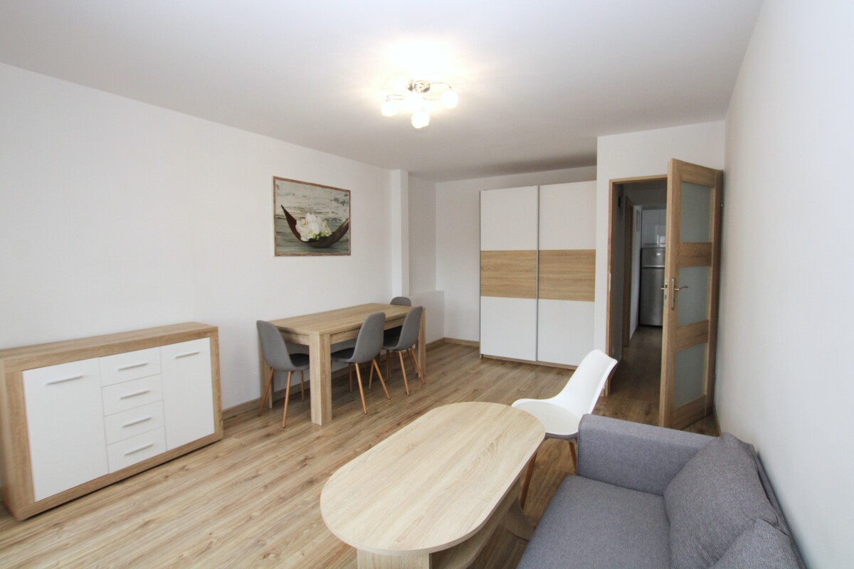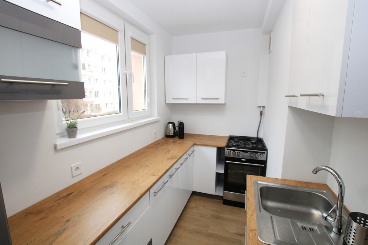 Mieszkanie składające się z 2 pokoi, kuchni, łazienki z wc i przedpokoju, o powierzchni 41 m2,usytuowane w rewelacyjnej lokalizacji, położone na I piętrze 4-piętrowego budynku. Lokal po remoncie, w bardzo dobrym stanie technicznym, z balkonem, z mediami miejskimi, kompletnie umeblowany.