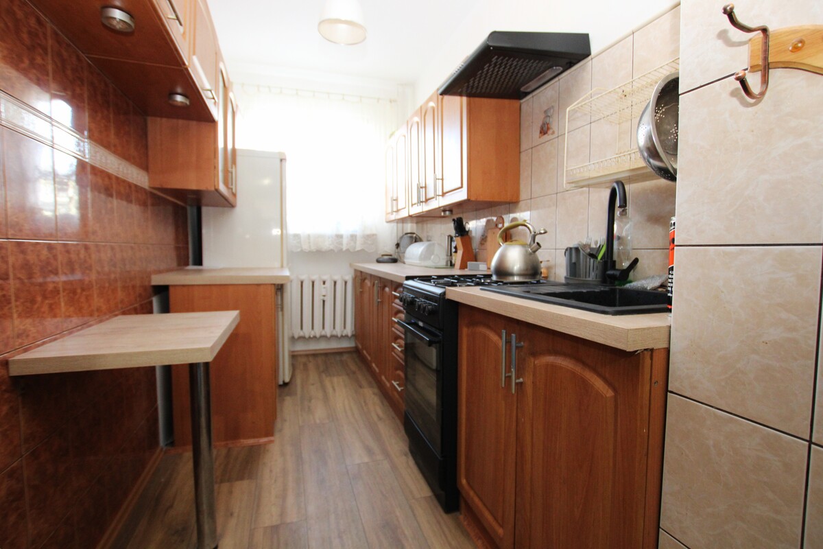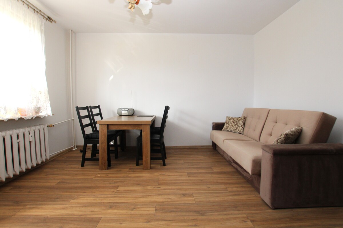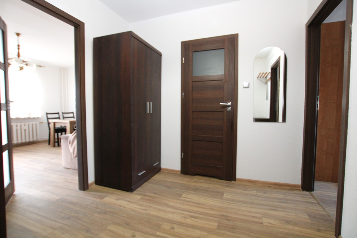 Mieszkanie 2-pokojowe, o powierzchni ok.48 m2,składające się z salonu z dużym balkonem, odrębnej sypialni, kuchni, łazienki, wc i przedpokoju, usytuowane na parterze budynku. Mieszkanie umeblowane, w bardzo dobrym stanie technicznym, z mediami miejskimi. Łazienka po generalnym remoncie, pokryta nowoczesną glazurą i terakotą z wanną, ze szklaną ścianką prysznicową. Ściany wycekolowane o jasnej kolorystyce, w pokojach podłogi pokryte nowymi panelami bardzo dobrej jakości.
