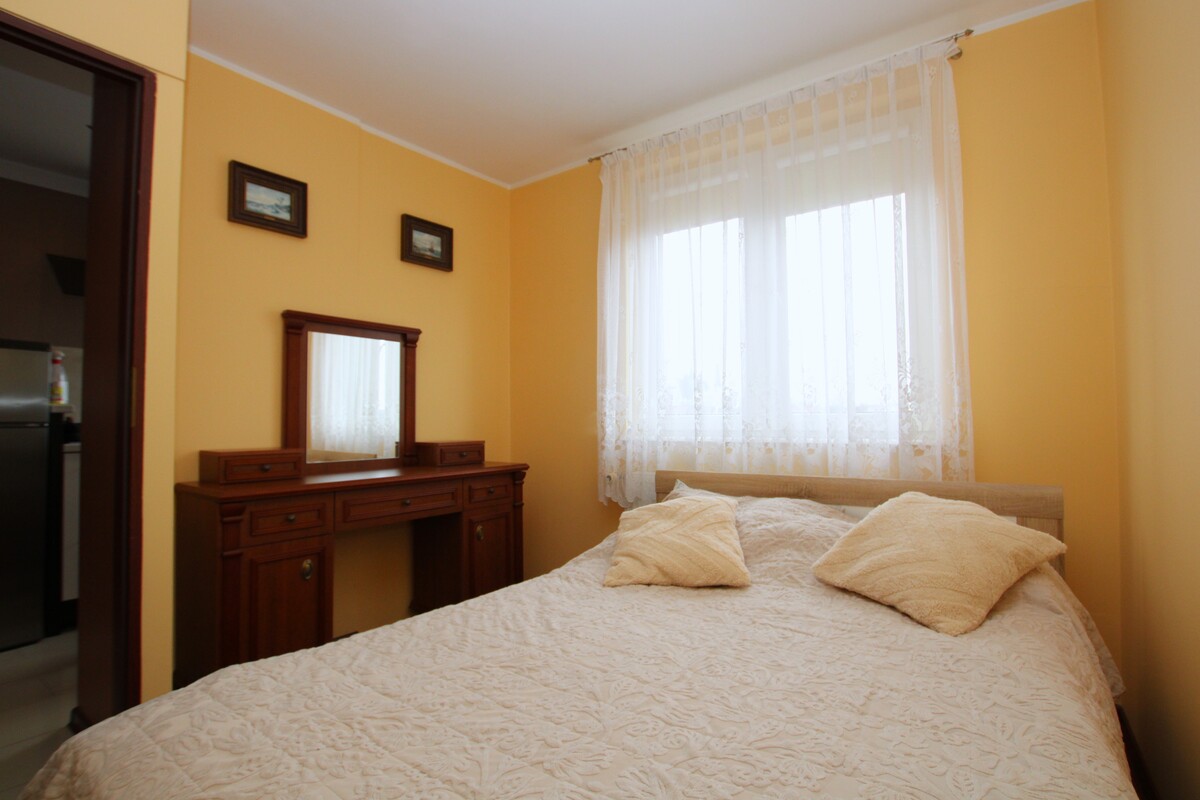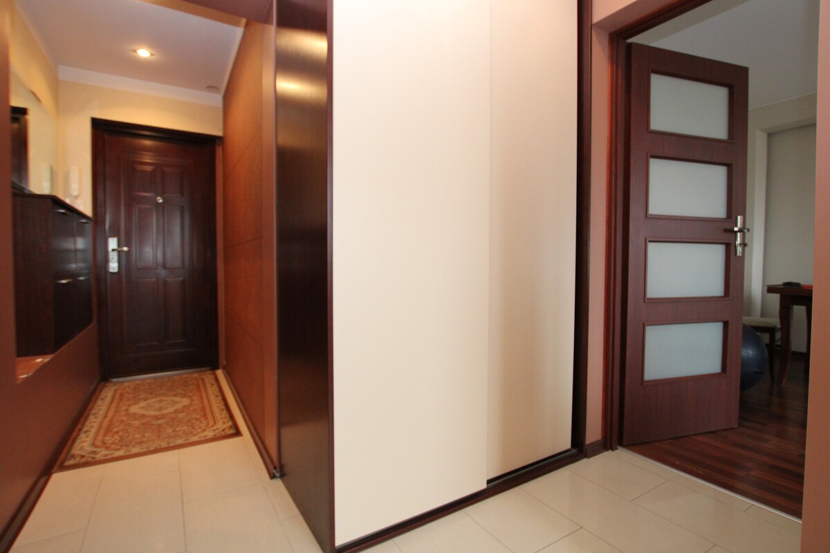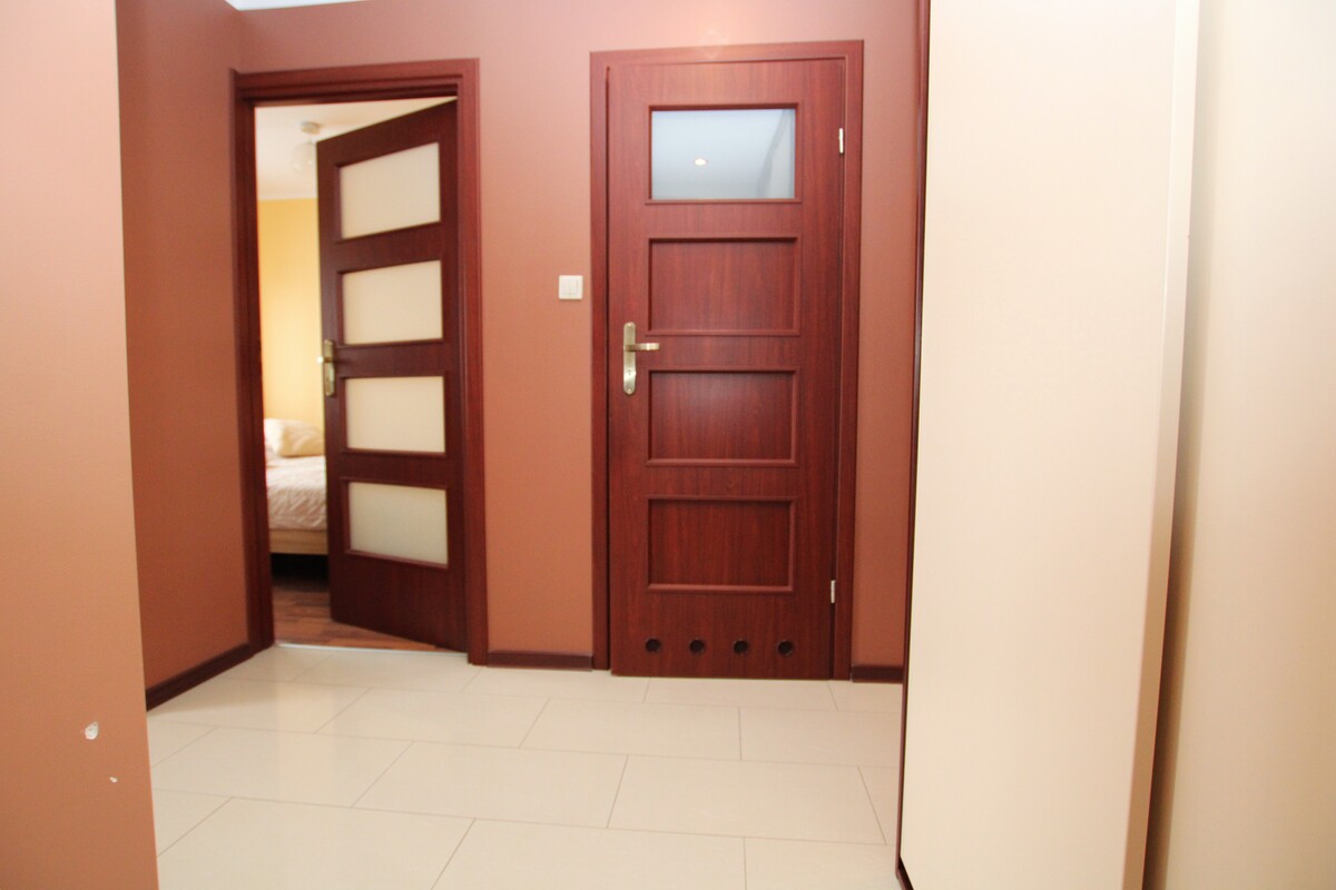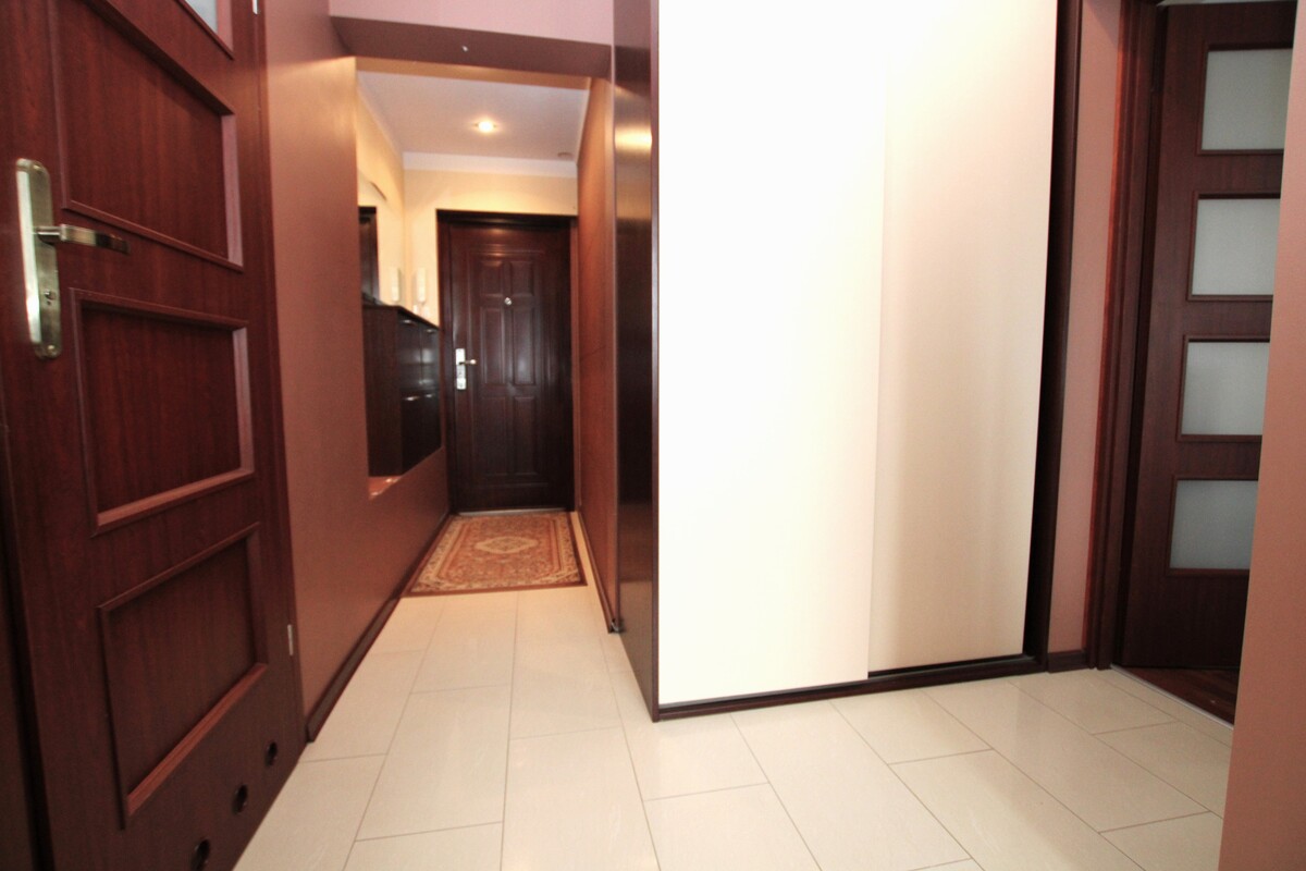 Wnętrze wyróżnia się niezwykle przemyślanym układem – osobne wejścia do każdego z pomieszczeń gwarantują prywatność i wygodę codziennego życia. Sercem mieszkania jest jasny pokój dzienny z bezpośrednim wyjściem na balkon. Uzupełnieniem przestrzeni jest funkcjonalna łazienka wyposażona w wannę narożną, wykończona ponadczasową glazurą i terakotą, która zachowa swój styl przez lata. Na podłogach w pokojach położono estetyczne panele, a w części przedpokojowej i kuchennej elegancki gres. Stolarka okienna PCV. Przedpokój zabudowany szafą garderobianą.