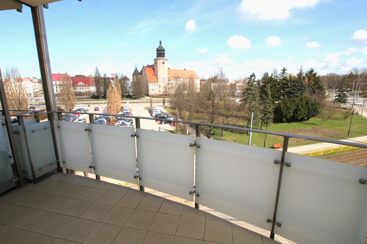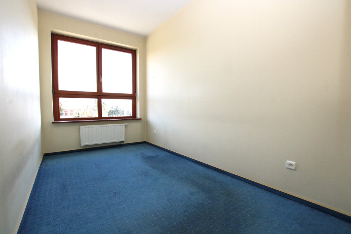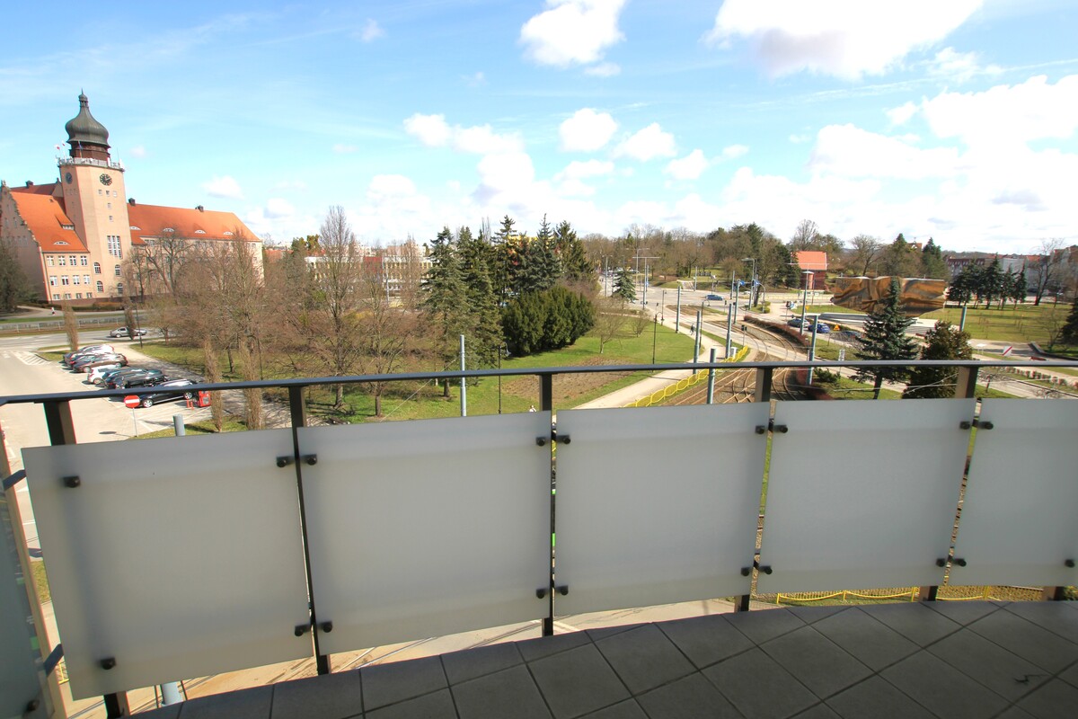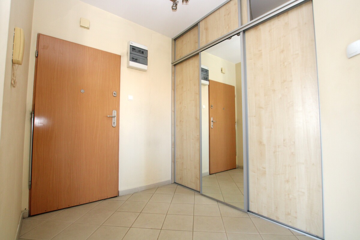 Lokal w bardzo dobrym stanie technicznym, z mediami miejskimi. Kuchnia ze sprzętem AGD, płyta elektryczna, okap, lodówka, piekarnik. Część dzienna z dużym balkonem z widokiem na panoramę miasta. Pokoje bez mebli, w przedpokoju duża szafa garderobiana z drzwiami suwanymi. W części dziennej ogrzewanie podłogowe. Duże okna w całym mieszkaniu doskonale rozświetlają pomieszczenia, urokliwy widok. Funkcjonalny rozkład pomieszczeń.