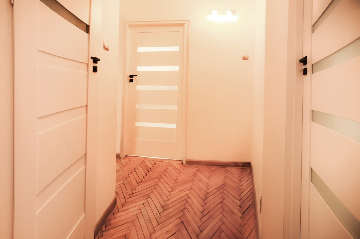 przestronny przedpokój z miejscem na szafy i siedzisko