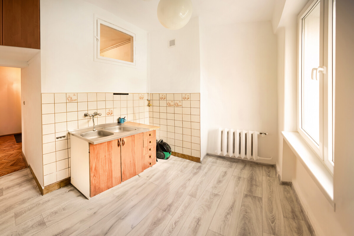 Mieszkanie w stanie do odświeżenia – łazienka i kuchnia do własnej aranżacji, co daje możliwość stworzenia wnętrza dopasowanego do własnych potrzeb i gustu.