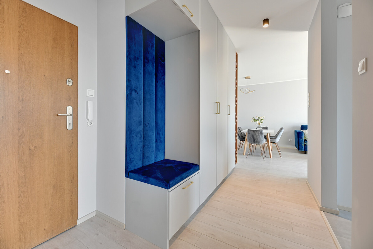 Mieszkanie zostało wykończone w wysokim standardzie i urządzone w nowoczesnym, eleganckim stylu. Składa się z: