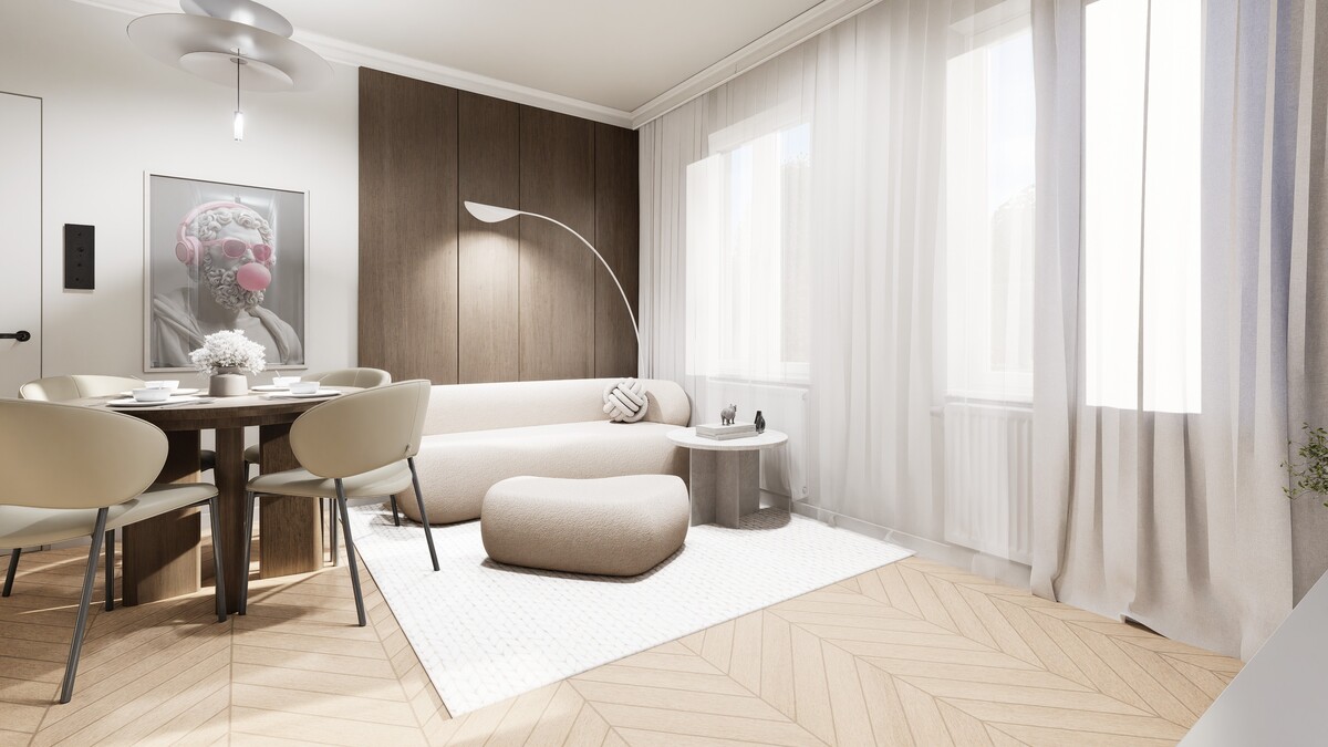 Do ogłoszenia dołączone są wizualizacje przedstawiające planowane wykończenie wnętrza, wykonane przez biuro JAVA Architekci – prezentują rzeczywisty standard i koncepcję aranżacyjną mieszkania.