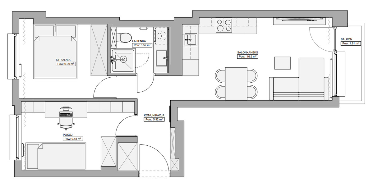 Nowocześnie zaprojektowane mieszkanie z bardzo funkcjonalnym rozkładem!