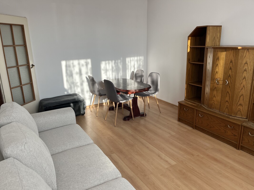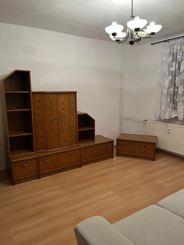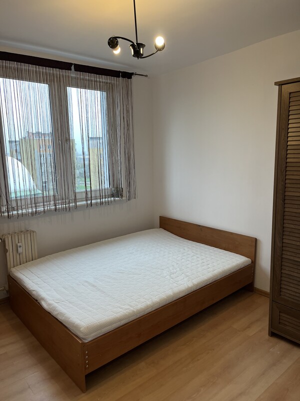 Lokal składa się z dwóch odrębnych pokoi, oddzielnej kuchni z oknem, przedpokoju, łazienki z wc. Do mieszkania przynależy piwnica i miejsce parkingowe za szlabanem. Mieszkanie posiada południową wystawę okien, dzięki czemu jest słoneczne. Mieszkanie po odświeżeniu, świeżo wymalowane. Ogrzewanie i media z miasta. Mieszkanie posiada niezbędny sprzęt agd, znajduje się tu m. in. nowa kuchenka elektryczna, lodówka, pralka. W sypialni łóżko 140x200 z nowym materacem, w dużym pokoju nowa sofa z funkcją spania, stół z krzesłami, meblościanka.
