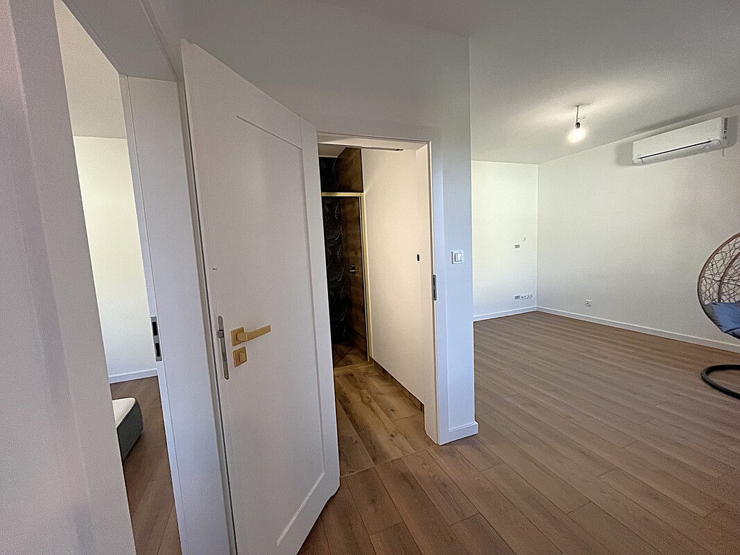 Zewnętrznie mieszkanie jest całkowicie wykończone, natomiast w środku znajduje się w stanie deweloperskim – z wykończoną na gotowo łazienką. Ogrzewanie miejskie.