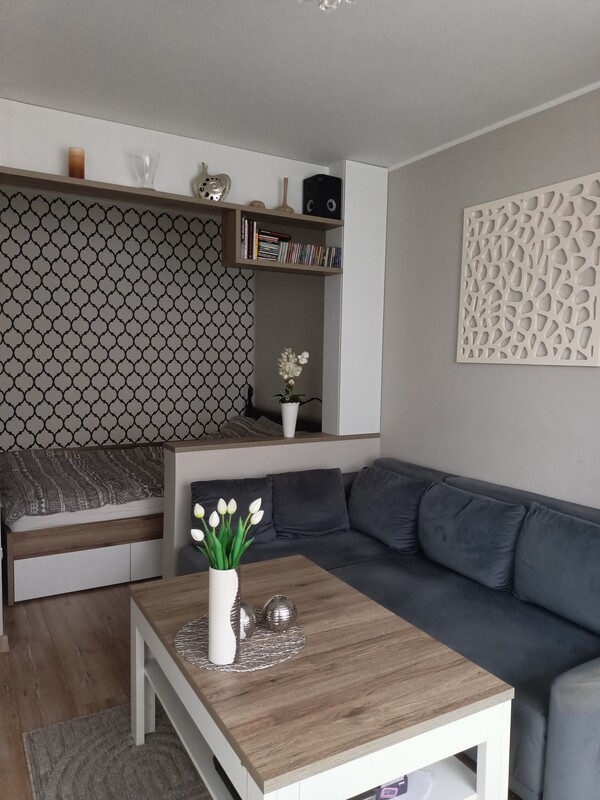 Mieszkanie składa się z ustawnego, jasnego pokoju, oddzielnej kuchni oraz łazienki z WC. Taki układ daje duże możliwości aranżacyjne zarówno dla osób szukających wygodnej przestrzeni dla siebie, jak i inwestorów planujących najem.