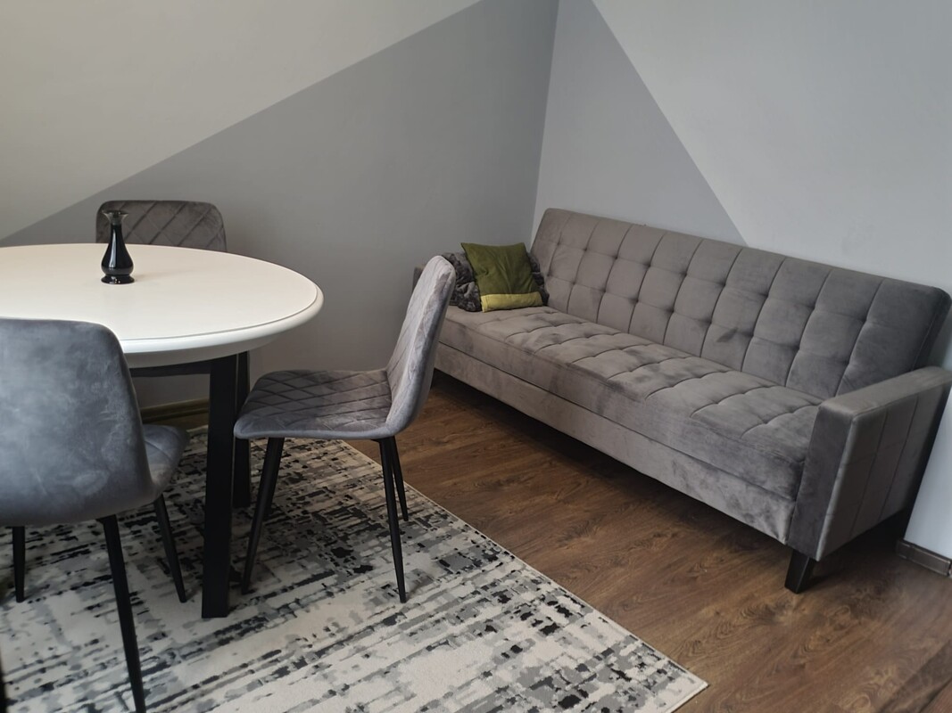 Mieszkanie jest urządzone w wysokim standardzie, po remoncie. Składa się z dużego salonu, sypialni, kuchni oraz łazienki.