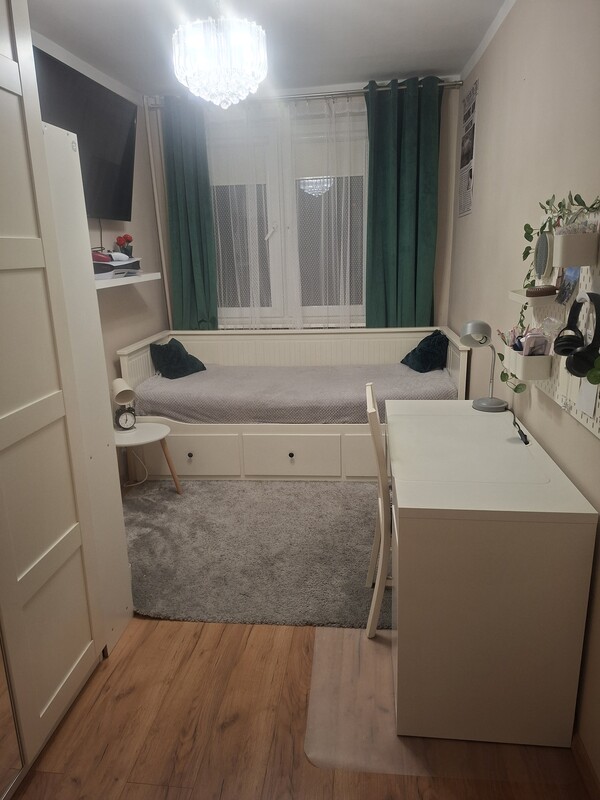 Mieszkanie jest dwustronne – ekspozycja wschód–zachód, czyli cały dzień słoneczne. Wszystkie media z miasta.