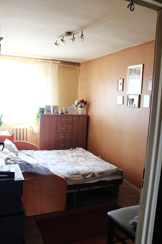 - z dużego przestronnego pokoju z wyjściem na balkon oraz wystawą okien na południowy zachód,