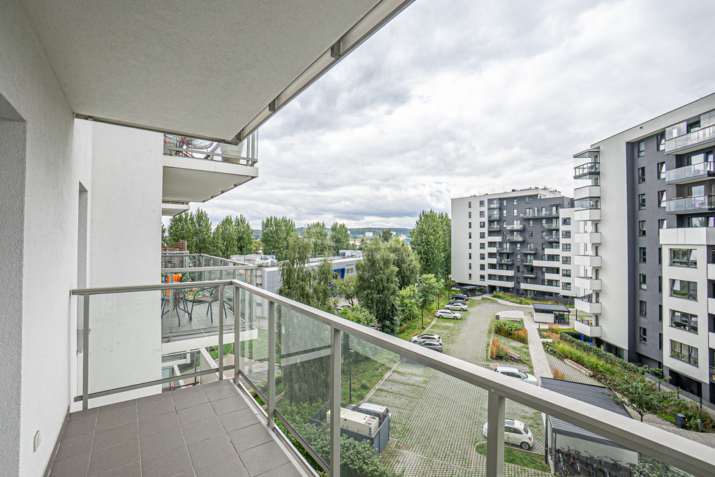 Dodatki: duży balkon z widokiem na wzgórza Moreny, Lasy Oliwskie i panoramę osiedla.Mieszkanie słoneczne - ekspozycja okien na zachód.