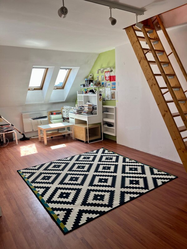 Mieszkanie 2 poziomowe (3 i 4 piętro) z dodatkową antresola o powierzchni 12m kw na poddaszu. Klatka schodowa nie posiada windy. Mieszkanie w spokojnej okolicy. W pobliżu znajduje się żłobek, przedszkole oraz szkoła. Dwa poziomy dają możliwość komfortowej aranżacji mieszkania na potrzeby małżeństwa z dzieckiem lub pary. Bardzo duża piwnica o pow.20 m kw. Południowy układ powoduje, że od rana do wieczora w mieszkaniu jest jasno i przyjemnie. W cenie mieszkania meble i zabudowa kuchenna. Oferta sprzedaży prywatna. Nie odpowiadam na sms'y. Pośrednikom dziękujemy.