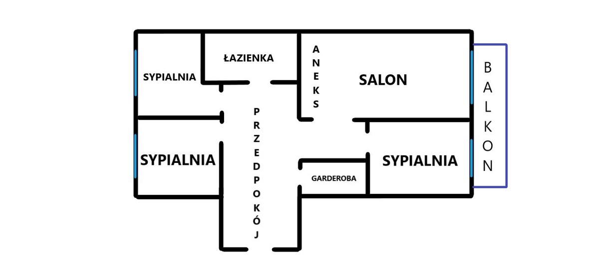 - trzech ustawnych sypialni