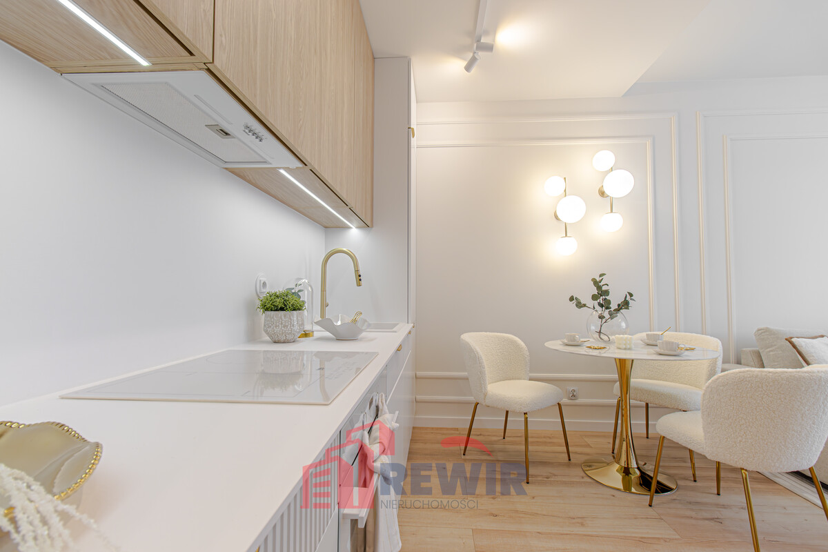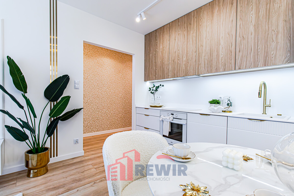 Zabudowa kuchenna wykonana przez stolarza w kolorze Dąb Olejowany firmy Woodeco oraz w kolorze Solid Biały firma Egger, dodatkowo ryflowane fronty. Wszystkie sprzęty AGD zostały wliczone w cenę nieruchomości. Blat zabudowy kuchennej EGGER z laminatu kompaktowego z rdzeniem barwionym w masie, o grubości tylko 12mm.