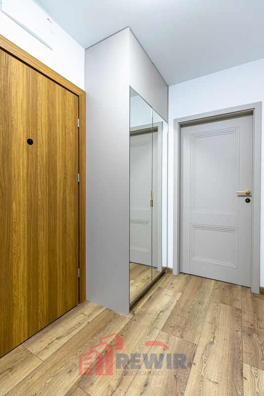 Przedpokój z wideodomofonem i dużą szafą dobrze wyposażoną