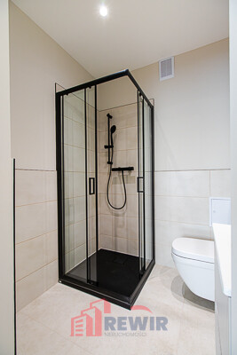 łazienka z kabiną prysznicową, wc.