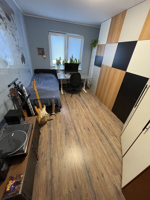 3 pokoje (14 m² + 11 m² + 7 m²) + salon z aneksem kuchennym (23 m²)