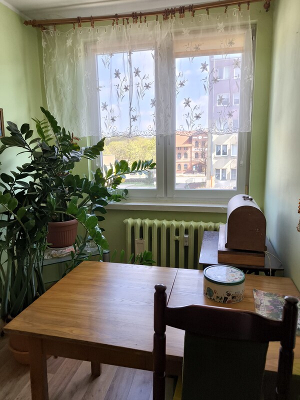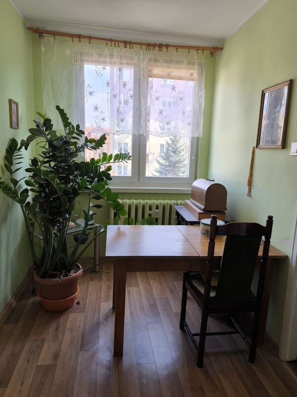 jest to mieszkanie własnościowe w budynku 4 - ro piętrowym na 1 piętrze, 2 pokoje (główny z balkonem), kuchnia, łazienka z WC,