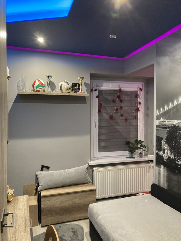 - 2 pokoje (jeden przedzielony ścianką działową – możliwość demontażu)