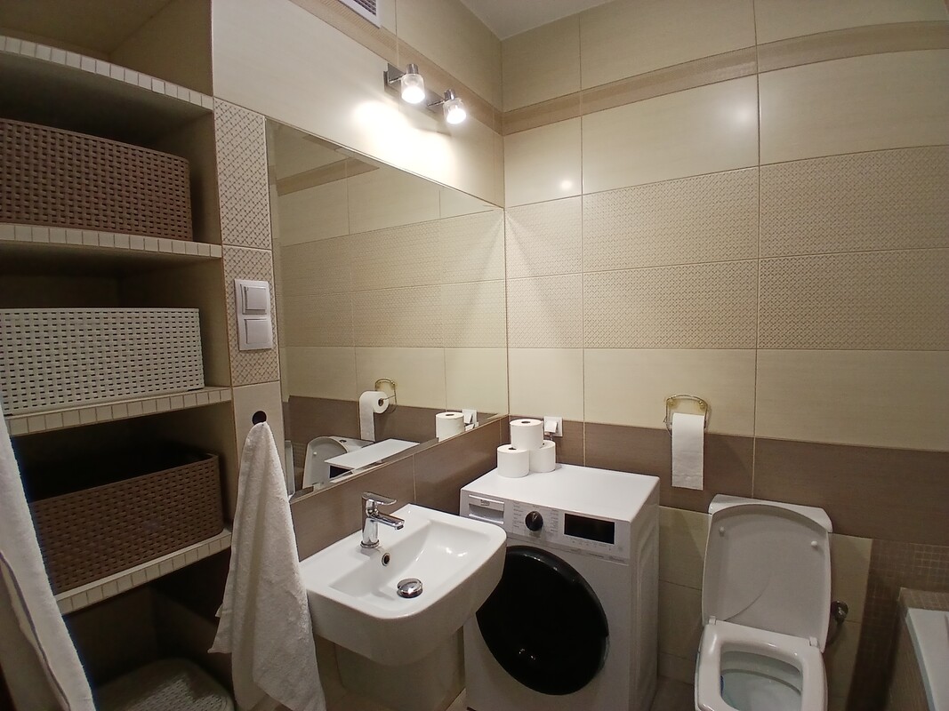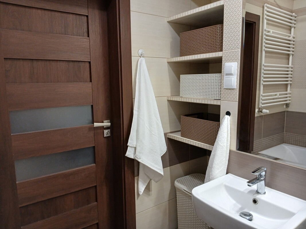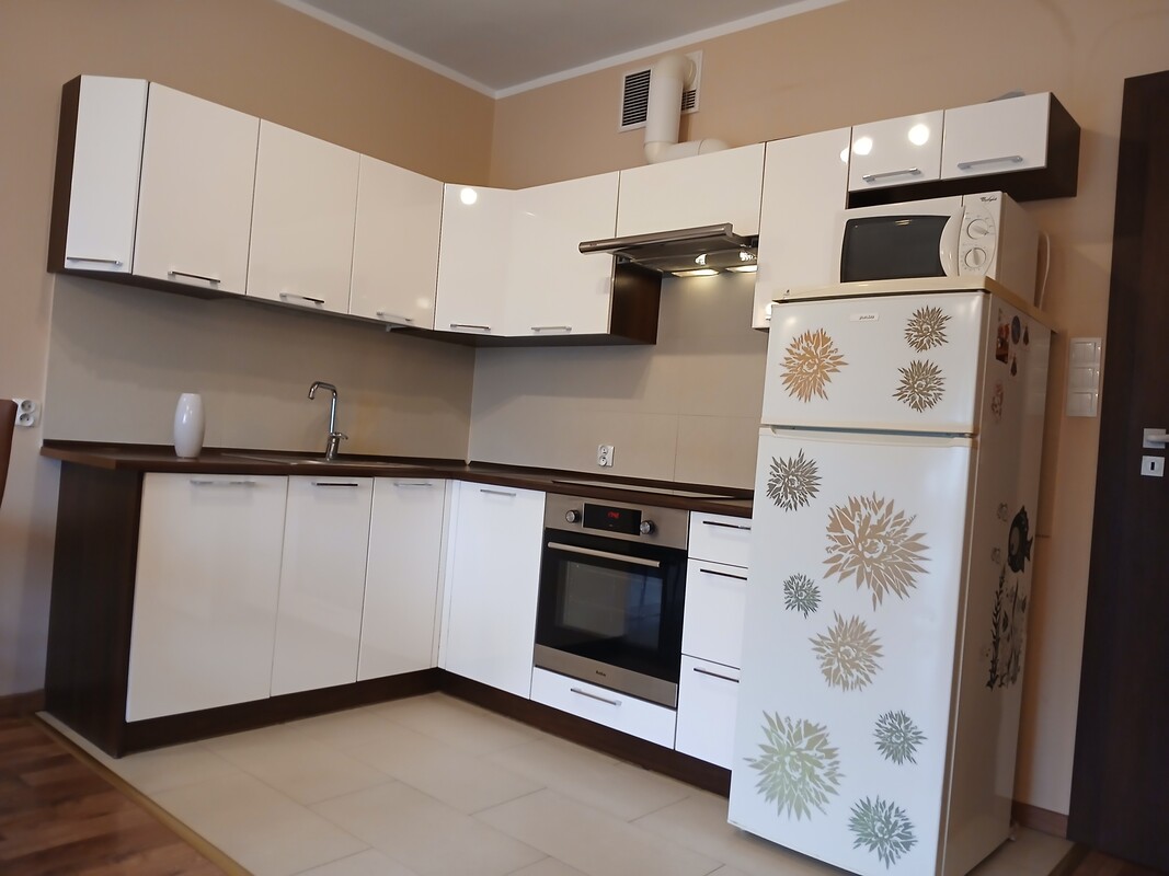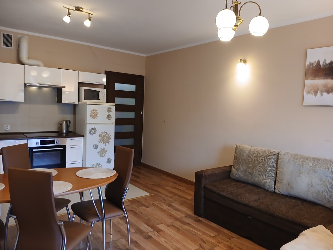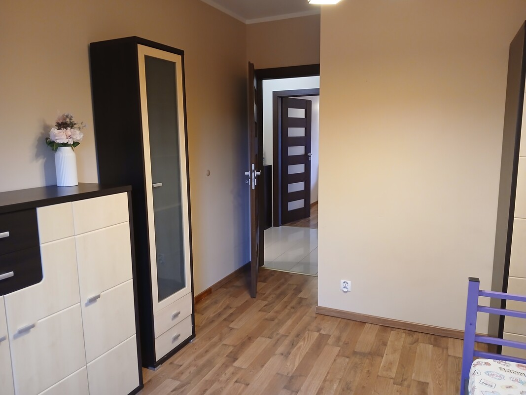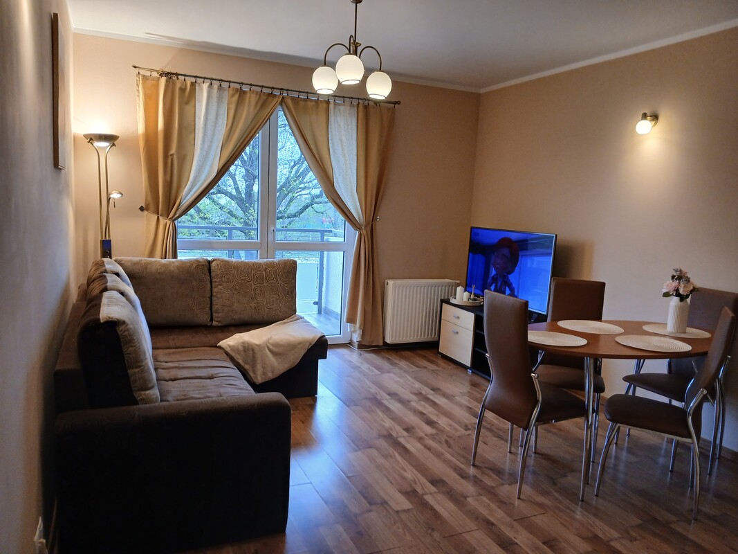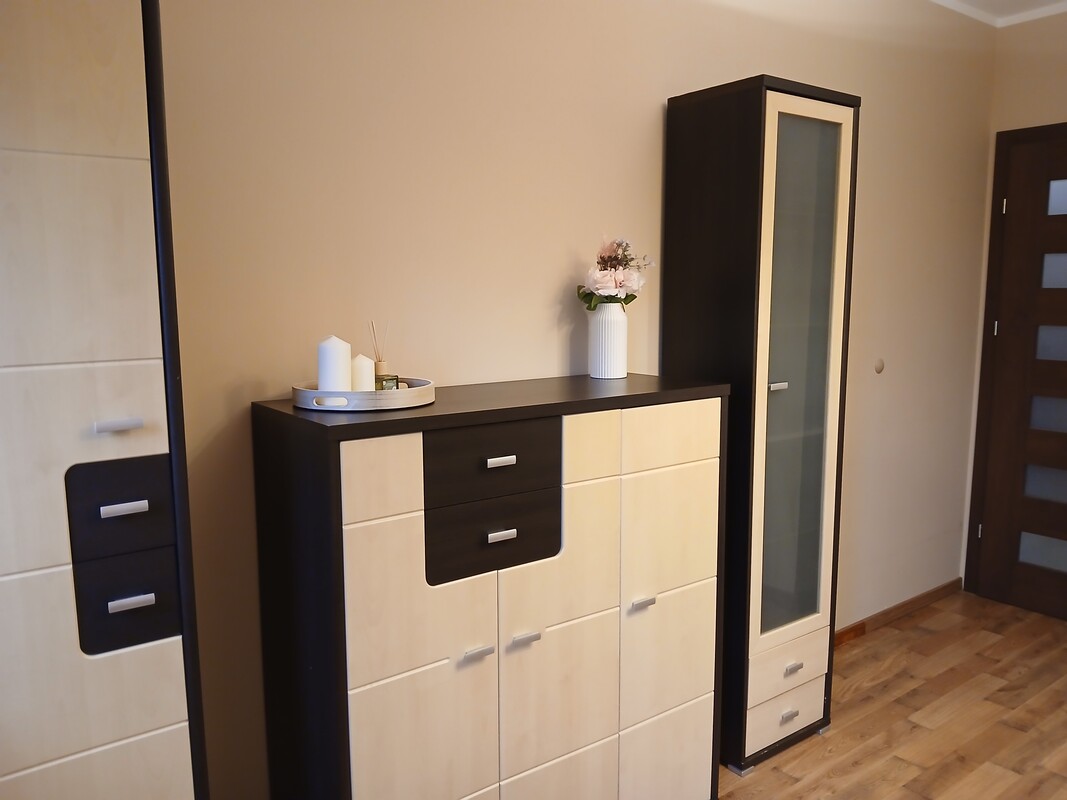 Mieszkanie składa się z salonu połączonego z aneksem kuchennym oraz wyjściem na balkon, dwóch pokoi, łazienki i przedpokoju. Lokal jest w pełni umeblowany i wyposażone w sprzęt AGD. Do lokalu przynależy duża piwnica o powierzchni 11 m/kwadratowych. Mieszkanie jest ciepłe i słoneczne, wszystkie media są z miasta.