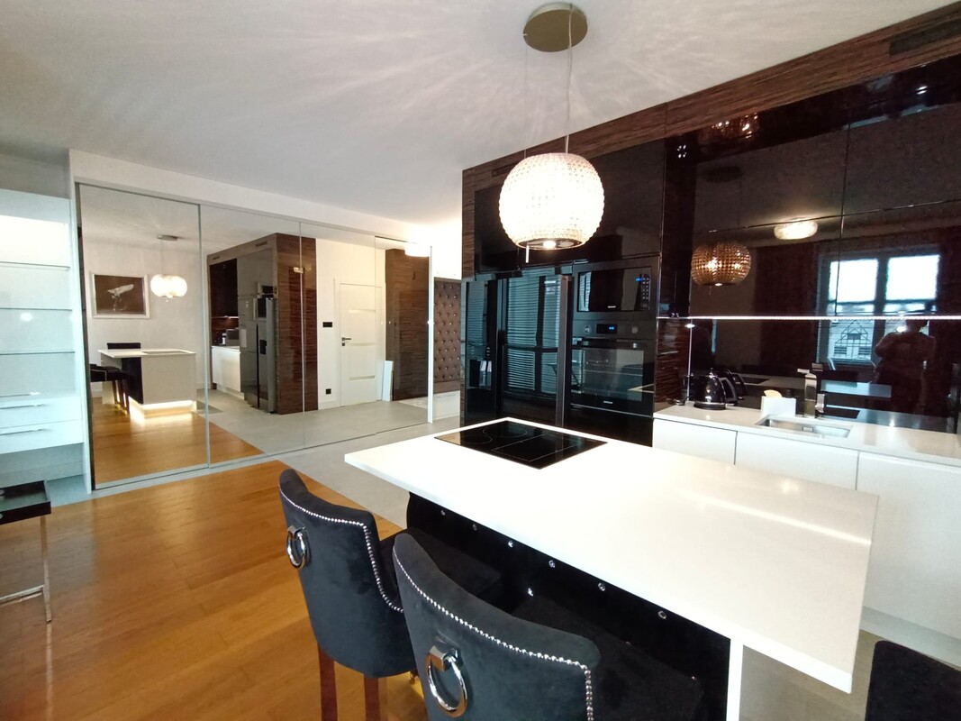 Proponujemy Państwu do wynajęcia luksusowo wykończony apartament, położony na Starym Mieście. Lokal o pow.39,36 m2 znajduje się na IV piętrze w budynku z windą. Z balkonu rozpościera się piękny widok na rzekę Elbląg, katedrę, plac z fontannami. Mieszkanie zostało wyposażone w zabudowę kuchenną z kamiennymi blatami, dużą lodówko - zamrażarkę, zmywarkę, piekarnik, mikrofalówkę, płytę indukcyjną, ekspres do kawy. W części wypoczynkowej znajduje się rozkładana kanapa, stolik kawowy oraz telewizor. Pojemna szafa z drzwiami lustrzanymi w której wykorzystano miejsce na chowane podwójne łóżko z materacem ( bardzo podręczny i lekki system ). Łazienka wyposażona w pralko - suszarkę z kabiną prysznicową. Dodatkowe opłaty to czynsz 485 zł ( zaliczka na wodę i opata za śmieci za 1 osobę). Kaucja zabezpieczająca 3.000 zł. Mieszkanie skierowane do jednej osoby bądź pary, pracującej ( bez zwierząt ). Istnieje możliwość korzystania z pakietu telewizji ( 80 kanałów ) i internetu za dodatkową opłatą 105 zł.