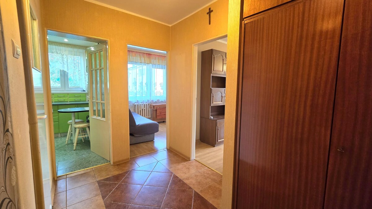 Jest to mieszkanie 3 pokojowe o powierzchni 51,34m2 z oddzielną kuchnią i łazienką na trzecim piętrze z balkonem. Położenie na trzecim ( przedostatnie) jest tu dodatkowym atutem bo pozwala mieć dobry widok ponad wierzchołki drzew i faktycznie widzieć jezioro również latem. Mieszkanie posiada piwnicę około 5m2 oraz parking ze szlabanem. Ogrzewanie i ciepła woda miejska. Instalacja elektryczna miedziana. Cały budynek jest po termomodernizacji, remoncie dachu i klatki schodowej. Lokal nadaje się do zamieszkania od zaraz.