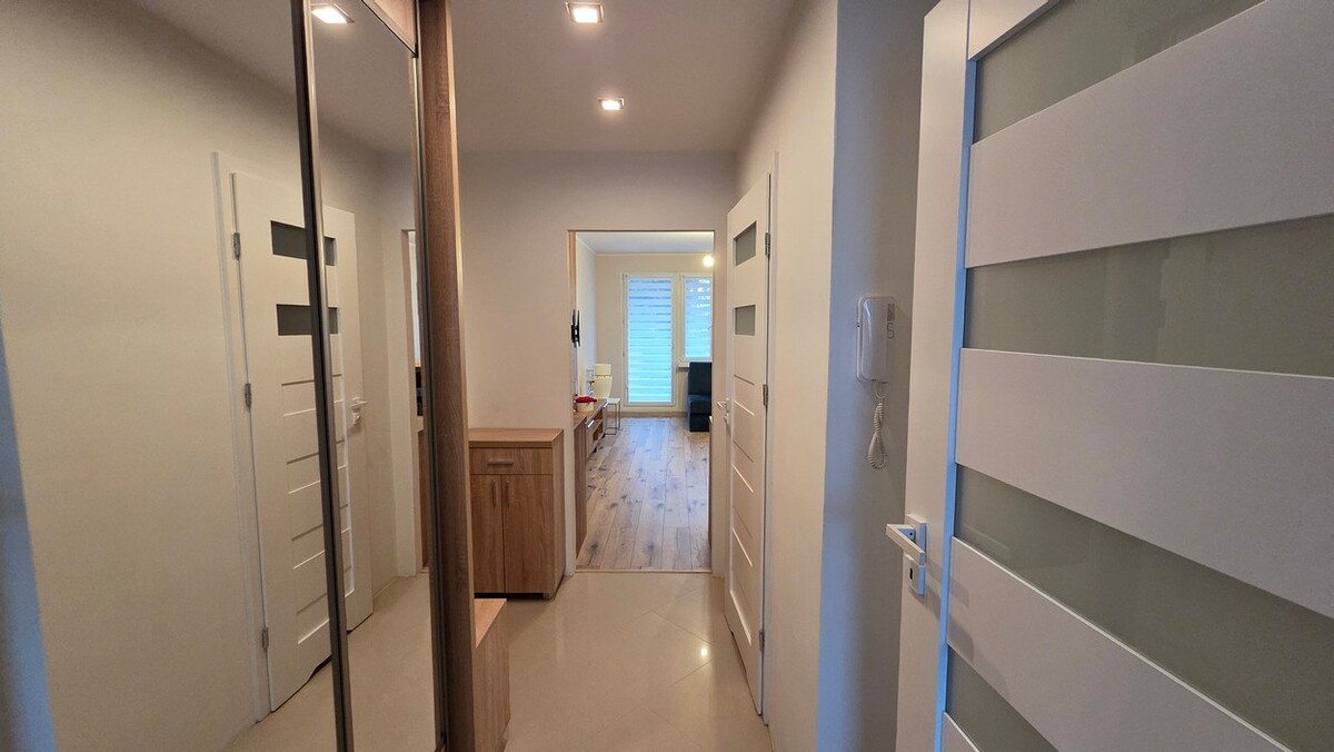 Mieszkanie umeblowane, aneks kuchenny w zabudowie wraz ze sprzętem AGD. W przedpokoju i sypialni szafa pod zabudowę.