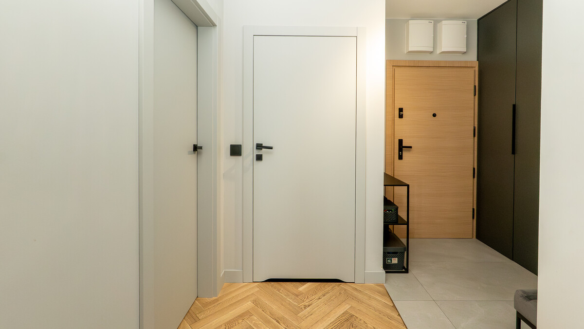 Dwie eleganckie sypialnie oferują prywatność i spokój, stając się zarówno azylem do odpoczynku, jak i przestrzenią do pracy w domowym zaciszu. Komfort zapewnia łazienka wyposażona zarówno w wannę, jak i prysznic, aby odpowiadać na różne potrzeby dnia. Uzupełnieniem układu jest oddzielne WC oraz przestronny przedpokój, który subtelnie dopełnia funkcjonalność apartamentu.