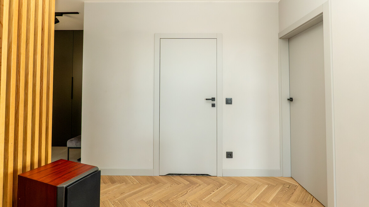Dwie eleganckie sypialnie oferują prywatność i spokój, stając się zarówno azylem do odpoczynku, jak i przestrzenią do pracy w domowym zaciszu. Komfort zapewnia łazienka wyposażona zarówno w wannę, jak i prysznic, aby odpowiadać na różne potrzeby dnia. Uzupełnieniem układu jest oddzielne WC oraz przestronny przedpokój, który subtelnie dopełnia funkcjonalność apartamentu.
