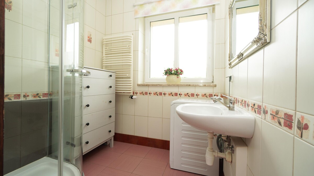 Łazienka z kabiną prysznicową i oknem to przestrzeń, w której można się odświeżyć i zacząć dzień z uśmiechem. Dodatkowym atutem jest osobne WC.