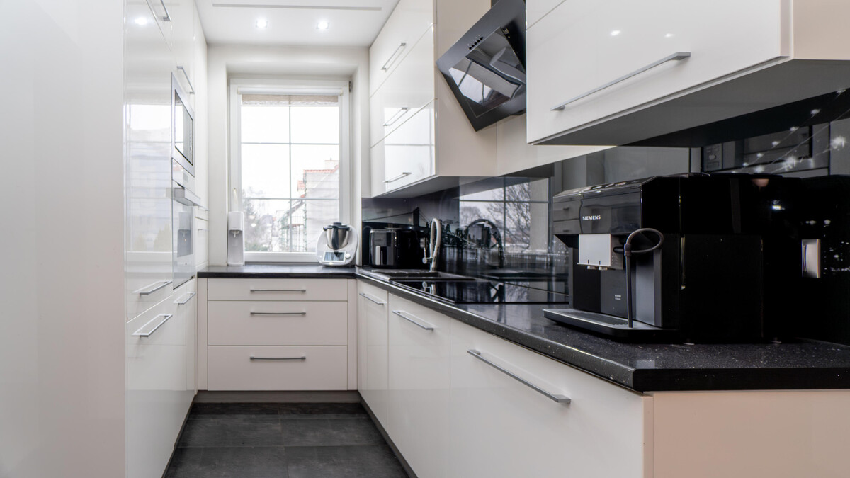 Oddzielna kuchnia z oknem daje komfort gotowania bez chaosu.