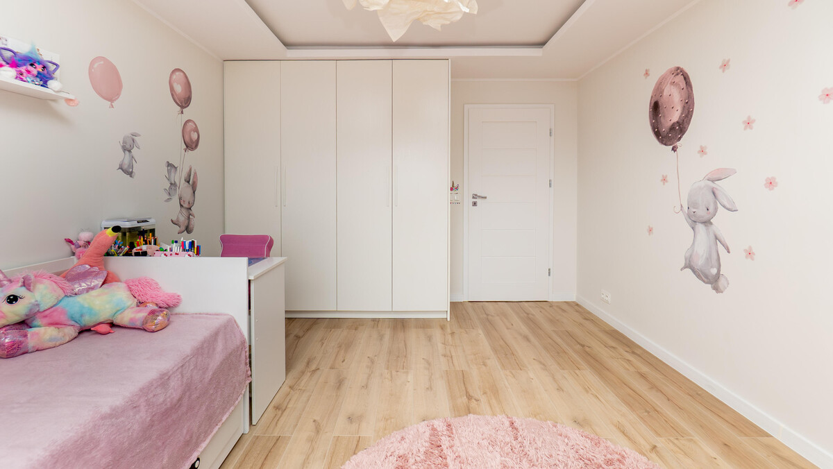 Duża, ustawna sypialnia z pojemną szafą zapewnia komfort przechowywania bez utraty przestrzeni.