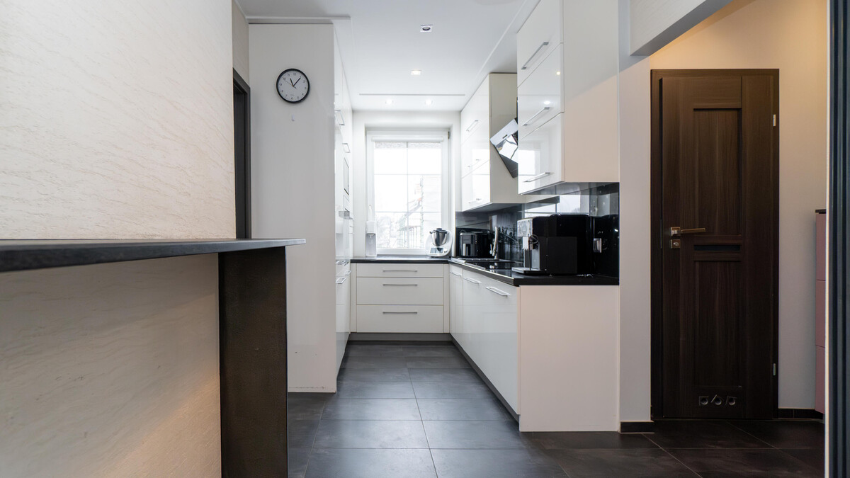 Oddzielna kuchnia z oknem daje komfort gotowania bez chaosu.