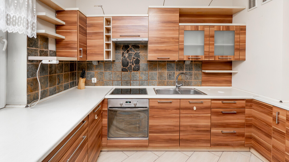 Kuchnia została w pełni umeblowana i wyposażona we wszystkie niezbędne sprzęty AGD – znajduje się tu kuchenka, płyta grzewcza, lodówka oraz liczne szafki zapewniające dużą ilość miejsca do przechowywania. Dodatkowym atutem jest stół z krzesłami, który tworzy komfortową przestrzeń do codziennych posiłków.