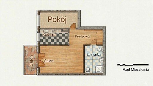 Przedpokój przestronny łączy wszystkie pomieszczenia mieszkania, oferując praktyczne miejsce na szafę lub komodę. Dzięki swojej ustawności pozwala na wygodne przechowywanie i utrzymanie porządku.