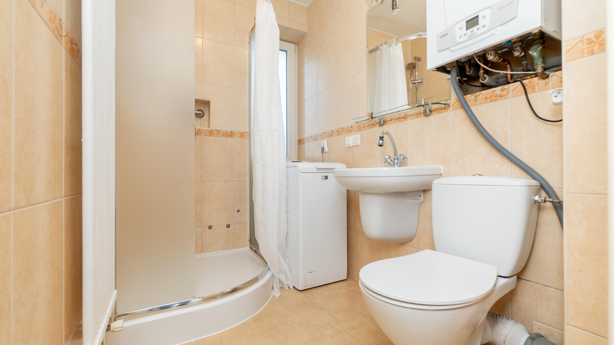Łazienka z kabiną prysznicową, wyposażona została w pralkę. Do dyspozycji pozostaje również piwnica o metrażu 6 m2 - która stanowi dodatkową przestrzeń do przechowywania.