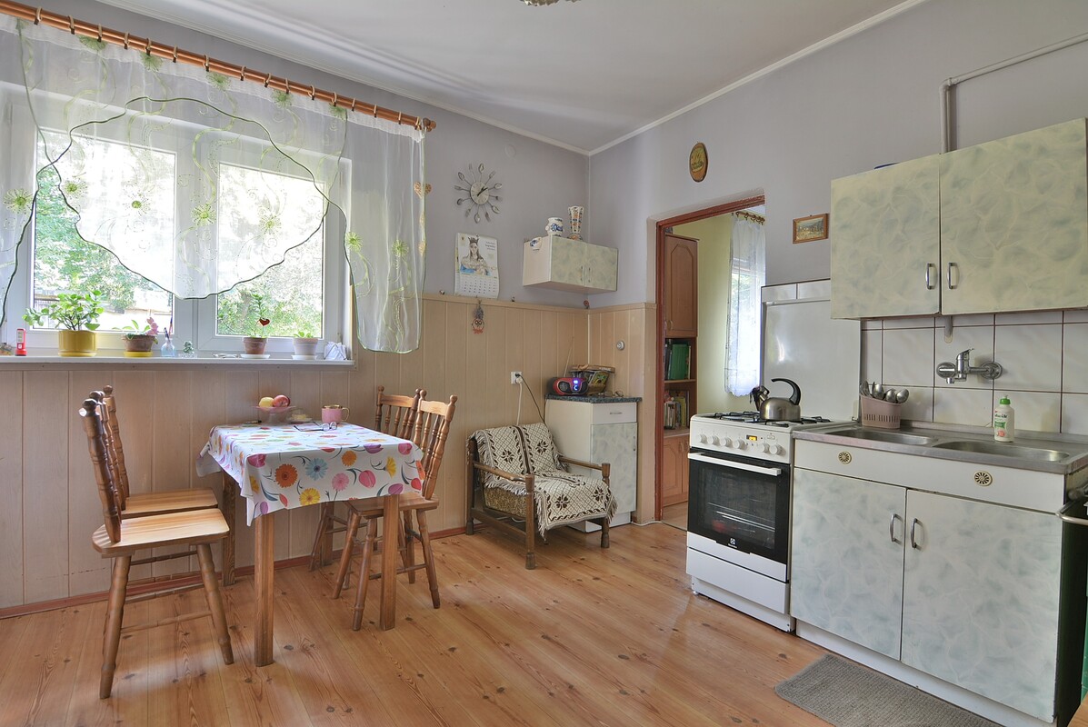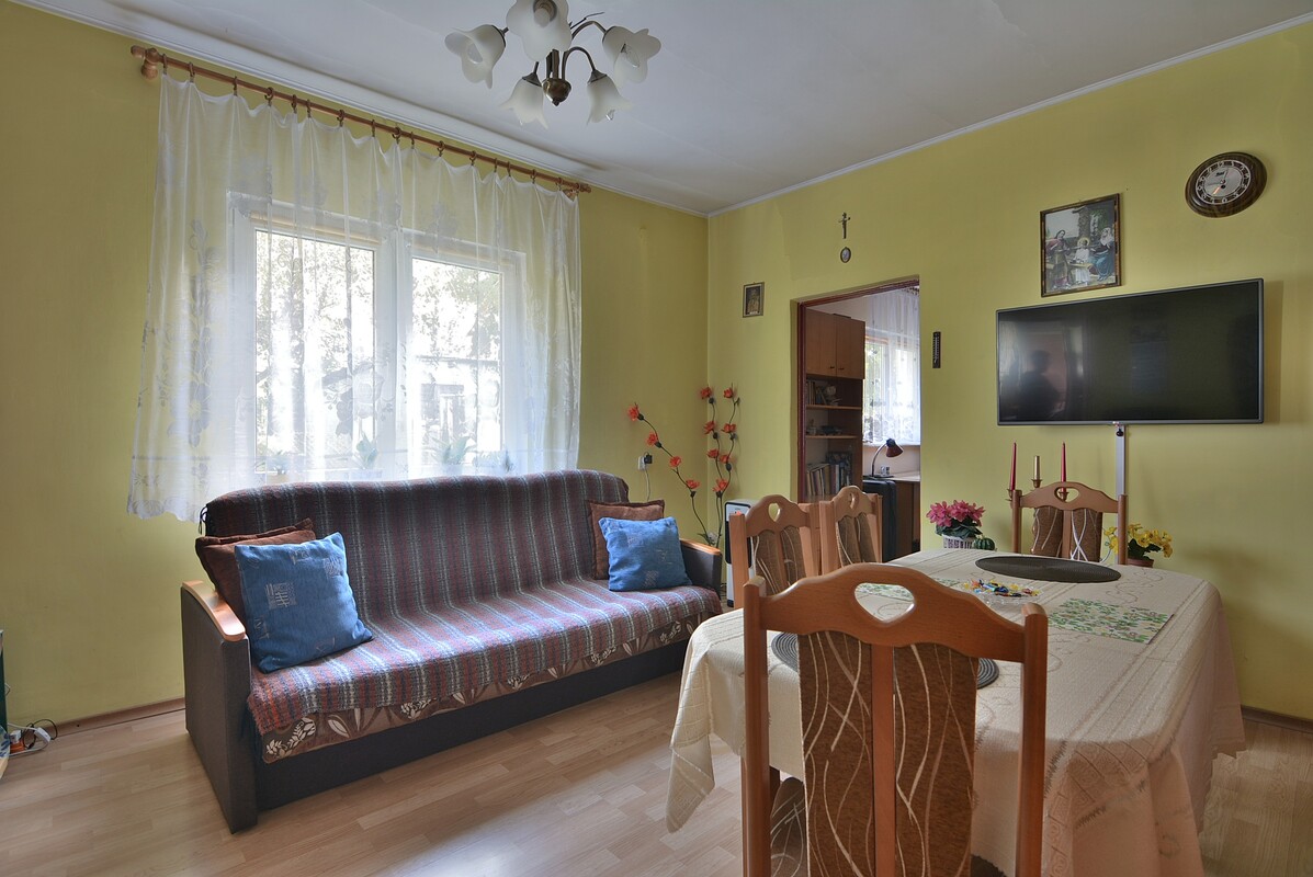 Wejście do mieszkania bezpośrednio przez przynależny do niego otwarty ganek. Mieszkanie bezczynszowe. Okna PCV z ekspozycją na wschód. Ogrzewanie mieszkania na piece kaflowe w pokojach, ciepła woda na piec etażowy w kuchni. Możliwe centralne ogrzewanie z ciepłą wodą za pomocą kotła na pellet, takie rozwiązanie zastosowano w sąsiednim mieszkaniu. Do mieszkania przynależy ogródek, murowany budynek gospodarczy z trzema wejściami, drewniany budynek gospodarczy i zagospodarowany sad. Mieszkanie dla osób ceniących sobie ciszę i spokój w otoczeniu zieleni, z możliwością dostępu do pełnej infrastruktury handlowo-usługowej w odległości zaledwie kilku kilometrów od miasta. Dla zainteresowanych więcej zdjęć na maila.