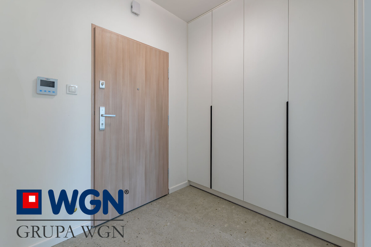 - przedpokoju z nowoczesną szafą w zabudowie stałej