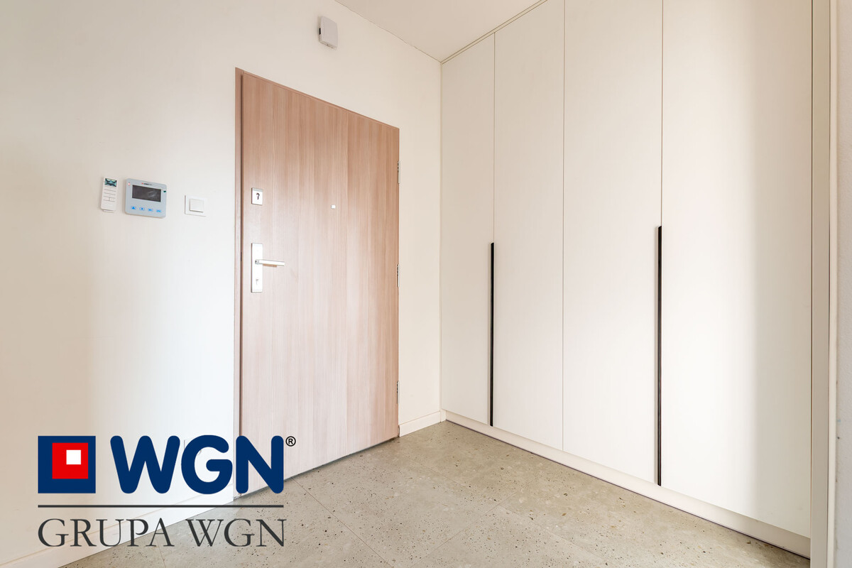 - przedpokoju z nowoczesną szafą w zabudowie stałej