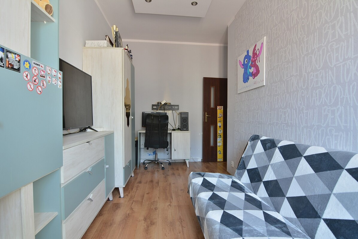 Remont generalny mieszkania miał miejsce ok. 10 lat temu. W pokojach podwieszane sufity z oświetleniem LED. Na podłogach panele poza łazienką i WC. Ekspozycja okien w pokojach na wschód, w salonie i kuchni na zachód. Z salonu widok na przydomowy ogródek. Ogrzewanie i ciepła woda na piec gazowy dwu-funkcyjny. Czynsz do wspólnoty mieszkaniowej wynosi 575 zł na 3 osoby. Do mieszkania przynależą dwie piwnice, ale tylko jedna o powierzchni 4,7 m2 stanowi własność. W cenie mieszkania całe wyposażenie ze sprzętem AGD. Mieszkanie dla osób ceniących sobie ciszę i spokój, a zarazem bliskość miejskiej infrastruktury, może również stanowić gotową inwestycję pod wynajem. Atrakcyjna cena do negocjacji. Należy do niej doliczyć koszty notarialne i prowizję dla biura nieruchomości. Oferta tylko w naszym biurze. Zapraszamy na prezentację.