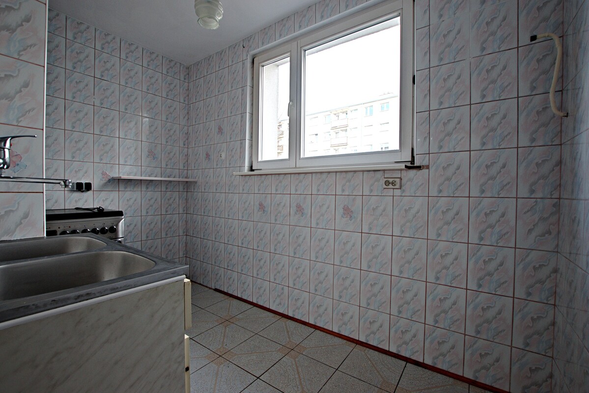 Kuchnia nie posiada żadnej zabudowy ani sprzętów AGD tylko zlew i kuchenkę gazową. W łazience zamontowana jest niewielka wanna. Mieszkanie jest doskonałą propozycją zarówno dla młodych osób, które szukają miejsca do urządzenia według własnego stylu, jak i seniorów, ceniących funkcjonalny układ pomieszczeń oraz spokojną przestrzeń mieszkalną.