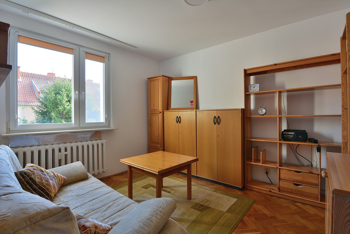 Ekspozycja okien na zachód w salonie, w sypialni i kuchni na wschód. Nowe drzwi wewnętrzne i zewnętrzne, świeżo pomalowane ściany. Mieszkanie umeblowane ze sprzętem AGD. Wszystkie media z miasta, czynsz do spółdzielni mieszkaniowej wynosi 661 zł na jedną osobę. Przytulne mieszkanie do wynajęcia dla singla lub pary. Wolne od zaraz. Najem okazjonalny - wymagane wskazanie lokalu zastępczego w formie notarialnej. Umowa na rok z możliwością przedłużenia.